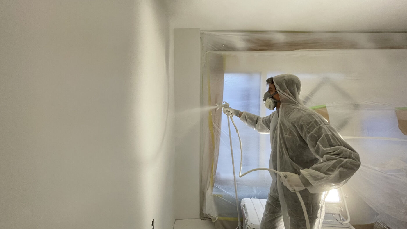 Airless spray painting uses high-pressure equipment to apply paint evenly, giving walls and ceilings in Marbella a flawless, streak-free finish faster than rollers or brushes.